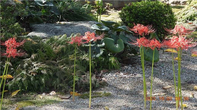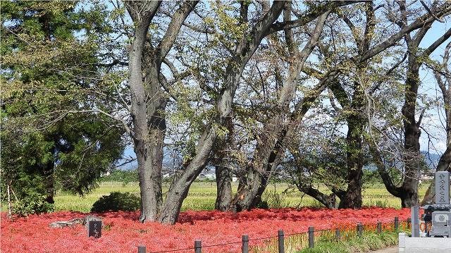 大ケヤキの根の周辺に咲く 彼岸花 |
