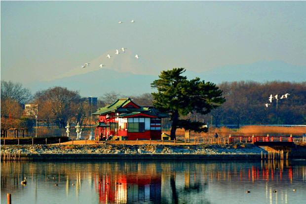 多々良沼は館林市の所属なのですがこの弁天様に群馬県邑楽町に存在する