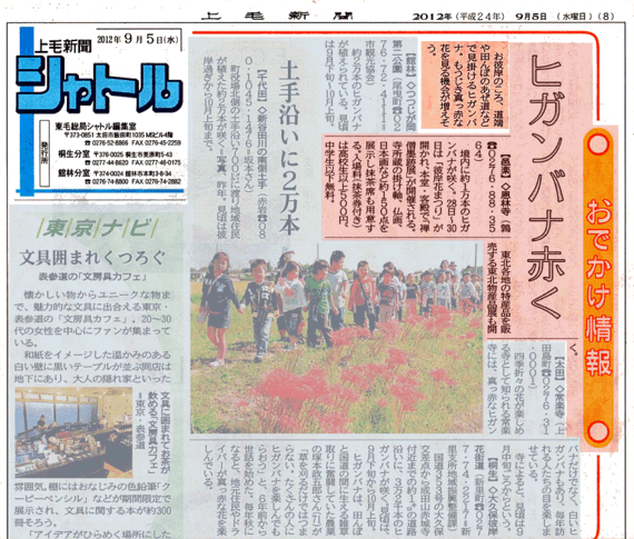 ・恩林寺 彼岸花まつり おでかけ情報 いつも大変お世話にな って居ります地域版広報誌「シャトル」(上毛新聞社様