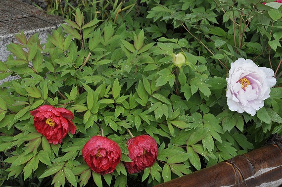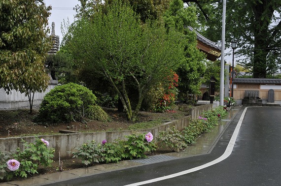 山門前の牡丹が開花致しました。他の牡丹もたくさん蕾を持って居りますので、
